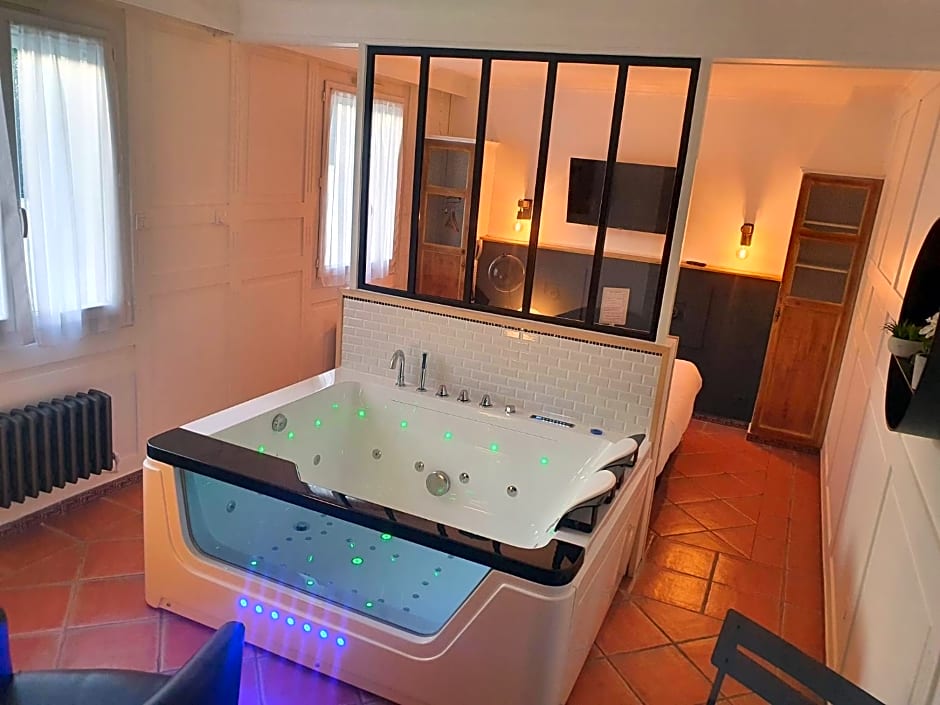 The hot tub is a top feature of this suite. The air-conditioned suite has 1 bedroom and 1 bathroom with a walk-in shower and a bath. The suite features tiled floors, a seating area with a flat-screen TV with cable channels, a tea and coffee maker, a wardrobe, as well as heating. The unit has 1 bed.
